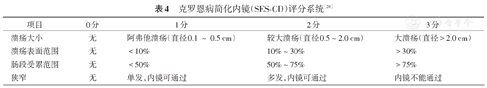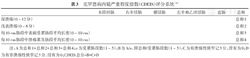 目前获得认可和推荐的CD内镜评分系统包括CDEIS、SES-CD和Rutgeert评分系统,其中Rutgeert评分系统用于CD术后复发的评估[28]。
