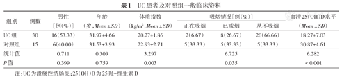 注:UC为溃疡性结肠炎;25(OH)D为25羟-维生素D