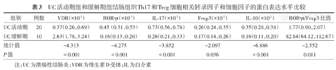 UC患者结肠组织中VDR表达降低与Th17/Treg细胞失衡相关。