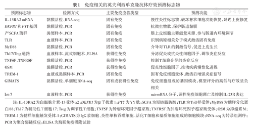 目前已知的疗效相关基因主要聚焦在凋亡信号、氧化应激反应及炎症通路中,根据其作用特征,可大致分为固有免疫应答预测标志物和获得性免疫应答预测标志物。见表1。