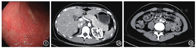 入院后体格检查:体温36.4℃,脉搏83次/min,呼吸21次/min,血压118/62 mmHg(1 mmHg = 0.133 kPa),体质量指数(body mass index,BMI)18.75 kg/m2。上腹部轻压痛及反跳痛。余无异常。