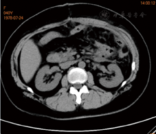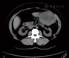 术后仁济医院放疗23次,放疗剂量46 Gy分23次。定期我院随访,2018年4月18日复查CA125为48.54 U/ml,略高于正常;8月15日复查CA125为24.65 U/ml。2019年6月自觉左上腹隐痛,于6月27日行腹部增强MRI,提示胃、胰尾及脾间隙内见一大小约103.5 mm×78.0 mm软组织占位,间皮瘤可能,横结肠系膜、大网膜多发小节结影,种植改变?腹膜后淋巴结增大(图1,图2,图3)。