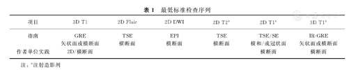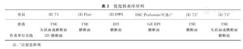 MRI检查序列的选择,BTIP-BM提出一个分层的检查建议,即最低标准检查序列(minimum standard)和优化检查序列("ideal"protocol),详见表1、表2和图1、图2。