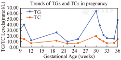 Hyperphagia and elevated lipid accumulation introduce physiologic tripling of the TG level in pregnancy. The mechanism by which pregnancy causes physiologic hypertriglyceridemia is not that clear, although there are several biologically plausible mechanisms. First, the insulin-resistant condition, especially in mid and late pregnancy, decreases LPL activity of adipose tissue and facilitates adipose lipolytic activity; besides, the growing plasma estrogen concentrations during pregnancy also generate gestational hypertriglyceridemia (GHTG). Furthermore, other physiological mechanisms are listed as follows: (1) increased adipose tissue lipolytic products was transferred to the liver, which promotes synthesis of triacylglycerols and the subsequent release of very low density lipoprotein cholesterol (VLDL) into blood; (2) weaken LPL activity spell reduced removal of VLDL from circulation; (3) at second and third trimester, enhanced cholesterylester transfer protein activity motivates the exchange of TGs from low density lipoprotein and high density lipoprotein (HDL) with VLDL; and (4) dramatic downgrade of hepatic lipase downgrades the translation of buoyant HDL2b triacylglycerol-rich particles, into small TC-rich particles.2,4