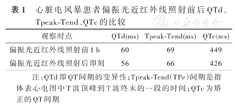 入院偏振光近红外线照射前后心电图QTd、Tpeak-Tend、QTc资料详见表1。