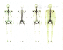 患者入院时常规对其疼痛程度进行视觉模拟评分(visual analogue scale, VAS)为8分。入院后进一步完善相关辅助检查(详见表1),(1)尿常规结果显示潜血+,25 Cells/μl;尿蛋白++,1.0 g/L;尿葡萄糖+++,28 mmol/L;(2)生化全项显示碱性磷酸酶436 U/L,磷0.56 mmol/L,钾3.33 mmol/L;(3) 24 h尿磷定量19.82 mmol/L,24 h尿钙14.21 mmol/L,24 h尿蛋白定量2.05 g/d,尿蛋白0.76 g/L;(4)尿蛋白电泳示显示混合型蛋白尿,以肾小管型为主;(5)内分泌六项显示促黄体生成素11.95 mIU/ml,促卵泡生成素21.19 mIU/ml;(6)甲状腺功能三项正常;(7)腰椎MRI显示T3~L11椎体有改变,考虑压缩骨折,各椎体信号普遍偏低,建议进一步检查除外骨髓异常疾病(图1);(8)全身骨显像显示全身多发骨质异常,性质待定(图2);(9)双下肢肌电图显示L4~S1神经根及支配区呈神经源性损害且以L4~5较为显著,合并周围神经性受损,左侧为重;(10)肿瘤全项、甲状旁腺激素、骨髓瘤监测均未见明显异常,血清免疫固定电泳未见M蛋白;(11)骨髓穿刺活检术检查显示粒细胞、红细胞、巨细胞系增生,未见明显异常骨髓象。双肾彩超未见明显异常。