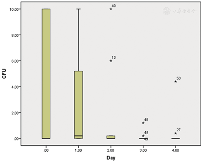 During the three days of the disinfection project, the total number of environmental microbial colonies in the ward areas was lower than before disinfection (Figure 4). A continuous downward trend remained at a low level for at least one day after the cessation of the intelligent robot disinfection. These findings suggest that the intelligent disinfection robot suppressed the total number of environmental microbial colonies in the isolation ward areas and helped prevent the indirect transmission of pathogens via environmental surfaces.