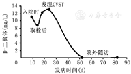 既往文献报道RMPP并发CVST病例较少,禚志红等[10]2017年曾报道了1例儿童MP感染致CVST病例,经溶栓治疗后患儿痊愈。初步分析血栓发生原因可能与MP感染,肺血流受到影响,静脉回流受阻,急性炎症反应导致全身高凝状态及激素的应用对凝血系统有一定影响[43]。MP感染导致血管内皮细胞受损,组织因子暴露,外源性凝血系统启动。MPP患儿,尤其是RMPP患儿全身炎症反应强烈,而血管的炎症反应可以产生炎症细胞因子、血栓形成前的血栓驱动微粒等,发生级联效应加速纤维蛋白沉积,形成血栓。超过50%的MP感染患儿,尤其合并血栓形成的患儿血清中ANAs和ACA一过性升高,考虑MP感染合并血栓可能与MP感染诱导的APA致短暂的高凝状态有关[32]。D-二聚体是交联型纤维蛋白的特异性降解产物,D-二聚体异常增高可反映机体继发性纤溶活性增强,表明机体处在高凝血状态,对血液高凝状态及血栓性疾病的诊断、疗效观察和预后判断具有较高价值[44],因此,D-二聚体可作为MPP并发血栓的危险因素[45]。本资料2例患儿血栓形成时均有D-二聚体水平显著升高,与既往研究相符[46],经治疗后例1患儿血清D-二聚体逐渐恢复至正常(图5),故认为D-二聚体对MPP并发CVST有早期快速诊断价值,可作为评估血栓形成的重要初筛指标。