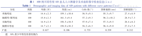 400例不同弯型AIS患儿人口测量学及术前影像学检查信息(
