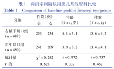 | 正中切口组(n=450) | 241 | 209 | 3.9±3.2 | 13.4±4.1 |