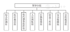 西溪医院作为杭州市定点收治医院,面临的主要问题是大量新冠肺炎患者短时间内聚集于院内,疑似病例的单间隔离需求[5,6,7,8]与确诊病例的及时医疗诊治需求压力空前,防护物资的短缺与工作人员的自身保护压力空前,疫情的防控与舆论的恐慌压力空前等。为此,医院紧急启动突发公共卫生事件应急预案,成立新冠肺炎防治工作领导小组和工作小组,架构见图2。
