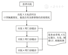 同时,针对新型冠状病毒感染的潜伏期不完全确定的现状,根据浙江省新冠肺炎防控工作的统一部署,对每一例患者出院后,均要求居家隔离14天。医院在患者出院时,同时将其信息传送至杭州市疾病控制中心,由疾病控制中心再将信息传递至患者出院后所在的社区,由社区工作人员负责监督与管理。为确保监督无死角,医院随访中心制定了新冠肺炎患者的随访制度,以便及时发现异常并提供医疗帮助。患者在出院后1周、2周、4周,均需专车前往西溪医院,由专人专区给予随访检查。随访中心将关注其随访依从性,确保每一例出院患者均能如期完成随访工作,具体见图4。截至2020年2月7日,西溪医院14例出院患者均未出现出院后再患病或再入院的情况。
