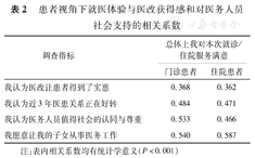 患者视角下就医体验与医改获得感和对医务人员社会支持的相关系数