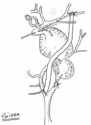 适合位于脑血管主干,如PICA和MCA的小型或中型梭形动脉瘤,将其切除后再将2支血管的断端进行吻合,称为血管再吻合术。而对于无穿通动脉的较大动脉瘤,则应使用植入血管搭桥术,避免血管张力增加。