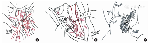 分为EC-IC血管搭术(图1)和IC-IC血管搭桥术。该搭桥方法的选择取决于合适的供血血管、受血血管及桥血管。