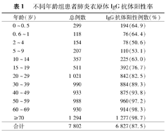 | 年龄(岁) | 总例数 | IgG抗体阳性例数(%) |