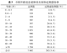 不同年龄组患者肺炎衣原体近期感染率
