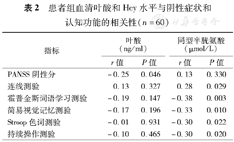 患者组血清叶酸和Hcy水平与阴性症状和认知功能的相关性(n=60)