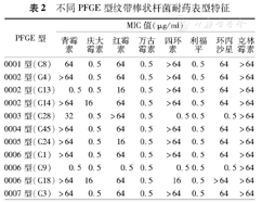 | PFGE型 | MIC值(μg/ml) | |||||||