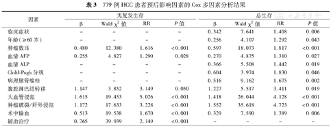 779例HCC患者预后影响因素的Cox多因素分析结果