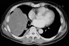 多数纵隔肿瘤患者存在胸闷气短、颜面部水肿等压迫症状。本组无症状者10例,仅占27.7%。胸部增强CT是重要的诊断和检测手段,可以对肿瘤的位置、大小、边界、密度以及周围脏器的关系有很大的提示作用[1,2]。肿瘤所在部位对于术前诊断意义重大,前上纵隔肿瘤以胸腺瘤、畸胎瘤等为主,而后纵隔肿瘤则多为神经来源肿瘤。术前穿刺活检在病理类型的诊断准确率<70%[3,4]。由于穿刺标本量小,且纵隔肿瘤本身复杂的组织来源,有时并不易获得明确的病理诊断。需在术前通过穿刺活检病理并结合病史及影像学资料以鉴别诊断[5]。