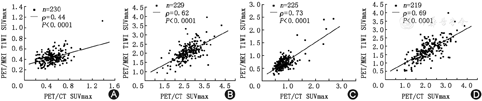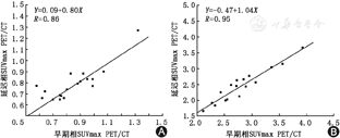 尽管SUVmax-MRI与SUVmax-CT存在差异,但是两者高度相关,提示PET/MRI均能提供可靠的定量诊断信息。