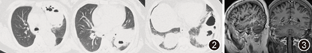 患者女,39岁,因右耳流脓2个月,发热、脓痰、皮下脓肿1个月于2013年5月入北京协和医院。2个月前右耳流脓、耳后胀痛、听力下降。1个月前发热,最高体温40 ℃,伴咳嗽,黄脓痰,偶痰中带血;出现皮下多发脓肿,累双侧乳房、右颌下、右腋下、右上臂、左腹壁等部位,破溃后流出红黄色脓液,恶臭。就诊于当地医院,检查示血常规:白细胞15.8×109/L,中性粒细胞80.9%,血红蛋白109 g/L,血小板537×109/L;红细胞沉降率(ESR) 75 mm/1 h;C反应蛋白(CRP)341 mg/L;胸部CT示双肺多发脓肿;头颅CT:双侧上颌窦、筛窦炎;结核抗体、脓液及痰培养阴性;右乳脓肿活检:乳腺脓肿伴肉芽肿形成;予哌拉西林/他唑巴坦等抗感染疗效不佳,为进一步诊治入北京协和医院。病来精神、饮食、睡眠差,体重下降10 kg。既往体健,曾饲养家禽。月经婚育、家族史无殊。体格检查:体温40 ℃,心率128次/min,血压130/80 mmHg(1 mmHg =0.133 kPa),血氧饱和度自然状态下92%,多发皮下脓肿破溃(图1),脓液流出,鼻梁背侧压痛明显,双肺呼吸音粗,心、腹部无特殊,双下肢无凹陷性水肿。实验室检查:血常规:白细胞11.73×109/L,血红蛋白96 g/L,血小板453×109/L;肝肾功:丙氨酸转氨酶462 U/L,白蛋白21 g/L,乳酸脱氢酶275 U/L;尿红细胞47.7/μl,尿红细胞畸形率90%,24 h尿蛋白1.0 g;降钙素元1.60 pg/L;G试验0.156 1 pg/L;皮损处脓液、鼻窦组织、痰、耳、鼻拭子培养,痰涂片及染色可见肺炎克雷伯杆菌、鲍曼不动杆菌、凝固酶阴性葡萄球菌、溶血孪生球菌及白念珠菌等多种细菌、真菌;结核抗体、血隐球菌抗原、GM试验、病毒血清学检查及血培养阴性。ESR 115 mm/1 h,超敏CRP 266.08 mg/L;抗中性粒细胞胞质抗体(ANCA):胞质型1∶20;蛋白酶3(PR3)-ANCA >0.2 RU/L;抗核抗体、抗可提取抗原抗体:阴性。胸部高分辨率CT(图2):右肺上叶结节、双肺多发团块软组织密度影,双肺门及纵隔多发淋巴结;鼻窦CT:鼻窦内广泛软组织影伴骨质破坏;颞骨薄层CT:双侧鼓室内弥漫密度增高影,右侧乳突骨质破坏,后颅窝面骨板不连续;内听道增强MRI:坏死性炎性病变可能。PET/CT:头面部多处代谢不均匀增高,双肺多发代谢异常增高的空洞及结节,皮下多发代谢增高灶,炎性病变可能性大,符合韦格纳肉芽肿。乳腺、皮肤及鼻中隔肿物活体组织检查均提示炎性肉芽肿,局部伴坏死脓肿形成及淋巴细胞浸润,可见局灶血管壁纤维增生。