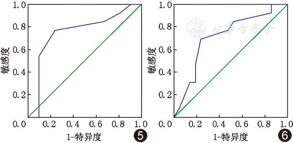 根据临床特点,分为2组,SFN组16例,混合性PN组18例。根据IENFD国际标准参考值,13例可诊断伴小纤维受损的周围神经病;IENFD与SFN-SIQ中度相关(r=0.437, P=0.012),与NSS[LL]边缘相关(r=0.334, P=0.062),且SFN-SIQ、NSS[LL]对小纤维病变的诊断价值中等,评分为6分时分别对应的正确诊断指数最大;混合性周围神经病组NDS[LL]评分明显高于小纤维病变组(t=–5.605,P<0.001);IENFD异常组NSS[LL]评分明显高于正常组(t=–2.047,P=0.049);IENFD异常组与正常组电生理参数差异无统计学意义。