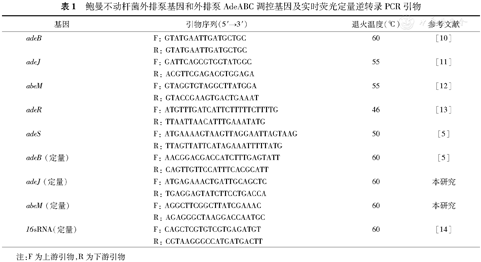 鲍曼不动杆菌外排泵基因和外排泵AdeABC调控基因及实时荧光定量逆转录PCR引物