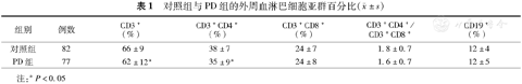 对照组与PD组的外周血淋巴细胞亚群百分比(