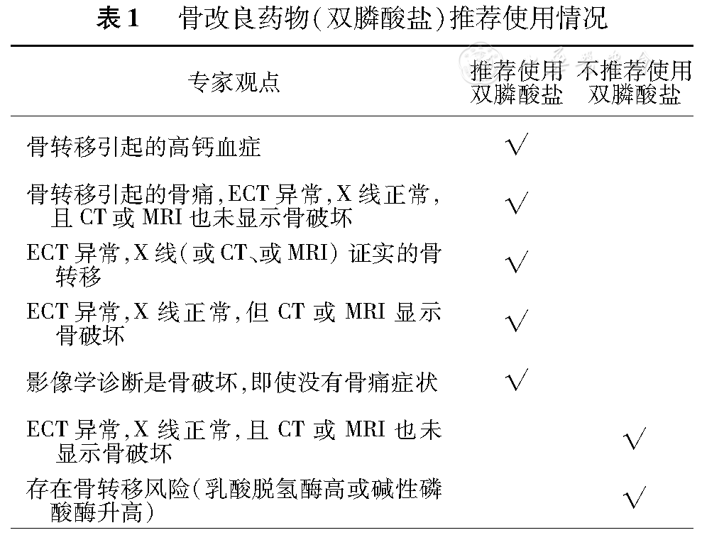 | 专家观点 | 推荐使用双膦酸盐 | 不推荐使用双膦酸盐 |
