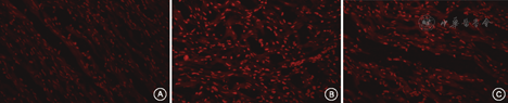 实验结束后,用水合氯醛麻醉大鼠后,体外心腔取血后以断颈法处死。然后采集所有大鼠的颏舌肌组织标本,采用以比色法为基本原理的实验技术分别检测了三组大鼠颏舌肌组织内丙二醛的含量和SOD的活力;MPO以ELISA法检测;以荧光探针法检测活性氧族含量,在荧光显微镜下观察大鼠颏舌肌组织中总活性氧族的相对水平,以常氧对照组为参照标准,进行标化换算比较。通过实时荧光定量(RT–q)聚合酶链式反应(PCR)技术检测大鼠颏舌肌组织中转录因子核因子(NF)–κB的mRNA水平。检测均按照试剂盒说明操作。
