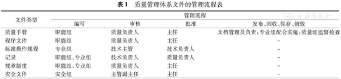针对质量管理体系文件的编写、审核、批准、发布、回收、保存、销毁等环节,制定清晰的管理流程,明确职责,控制关键节点(表1)。