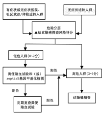 我国人口众多,直接采用结肠镜检查进行人群普查需消耗大量的人力、物力,且结肠镜是侵入性检查,有一定的并发症风险,因此,只有先对平均风险人群进行初筛,然后再针对高危人群进行结肠镜精查,才是可能行之有效的方法。