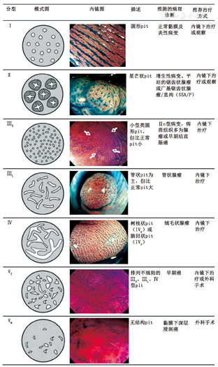 日本工藤分型与病理诊断的高度相关已得到公认[85],而Ⅴ型腺管开口的细分对判断浸润深度有很大帮助,可分为ⅤI型(轻度不规则ⅤI型、重度不规则ⅤI型)和ⅤN型,目前认为轻度不规则ⅤI癌浸润深度<1 000 μm,而重度不规则ⅤI型和ⅤN型癌浸润深度>1 000 μm[86]。