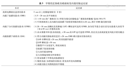 | 内镜下黏膜切除术(EMR) | (1)5~20 mm的平坦病变 | |