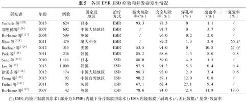 注:EMR:内镜下黏膜切除术(部分为EPMR:内镜下分片黏膜切除术);ESD:内镜黏膜下剥离术;/:无此数据;a复发/残留率