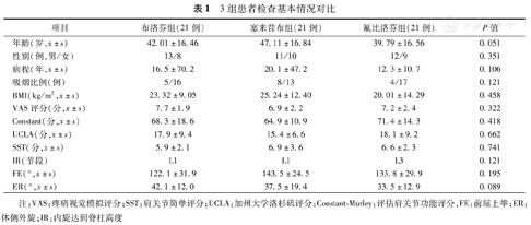 权重分析3组患者术前患者在年龄、性别、病程、吸烟者比例、BMI方面差异均无统计学意义(表1)。