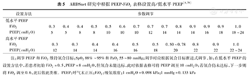 在临床实践中,个体化滴定PEEP的方法很多[77](表6),但目前未有研究证实何种PEEP设置方法最佳[78],有条件的单位可参考这些设置方法指导PEEP的个体化设置。
