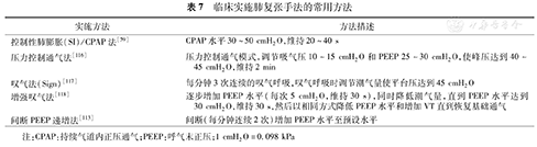 | 控制性肺膨胀(SI)/CPAP法[59] | CPAP水平30~50 cmH2O,维持20~40 s |
