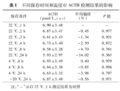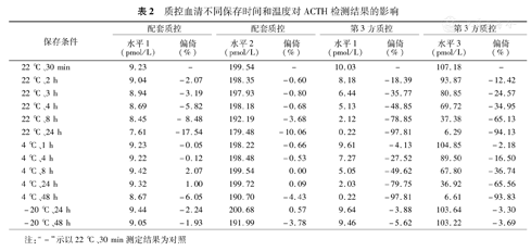 质控血清不同保存时间和温度对ACTH检测结果的影响