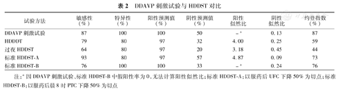 注:a因DDAVP刺激试验、标准HDDST-B中假阳性率为0,无法计算阳性似然比;标准HDDST-A:以服药后UFC下降50%为切点;标准HDDST-B:以服药后晨8时PTC下降50%为切点