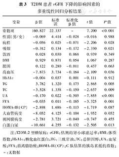 T2DM患者eGFR下降的影响因素的多重线性回归分析结果
