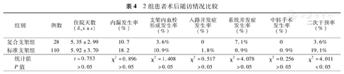 | 复合支架组 | 28 | 5.35±2.99 | 10.7 | 3.6% | 0 | 7.1% | 0 | 3.6% |