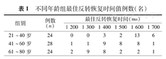 不同年龄组最佳反转恢复时间值例数(名)