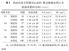 两组间各节段横突孔面积、椎动脉截面积以及扭曲系数的比较(