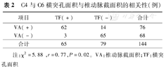 C4与C6横突孔面积与椎动脉截面积的相关性(例)
