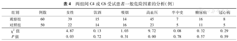 两组间C4或C6受试患者一般危险因素的分析(例)
