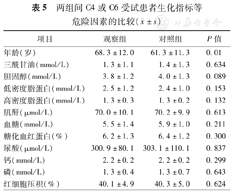 两组间C4或C6受试患者生化指标等危险因素的比较(