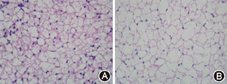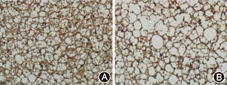 HE染色结果表明,棕色脂肪组织主要由多泡脂肪细胞构成,脂肪细胞内散在大小不均的脂滴空泡。野生型对照组小鼠棕色脂肪细胞内多为小空泡,大空泡相对较少,而SIRT1杂合子小鼠的大空泡明显增多(图2)。